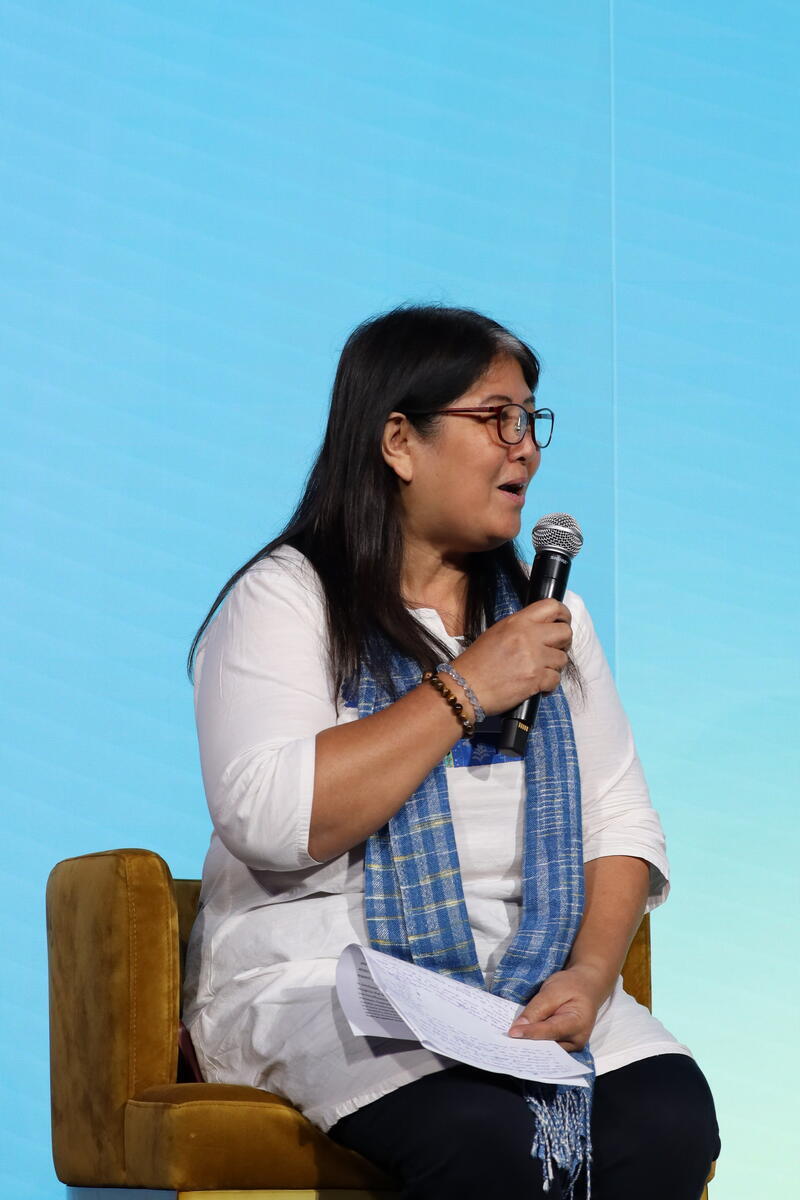 14 October 2025, FAO Rome Headquarters, Italy. Maria Elena V. Rebagay (Lany), the Deputy Secretary General of the Asian Farmers’ Association for Sustainable Rural Development (AFA), sits during the Science and Innovation Forum Driving technologies and innovations towards equitable agrifood systems transformation: launching of ATIO (OIN).