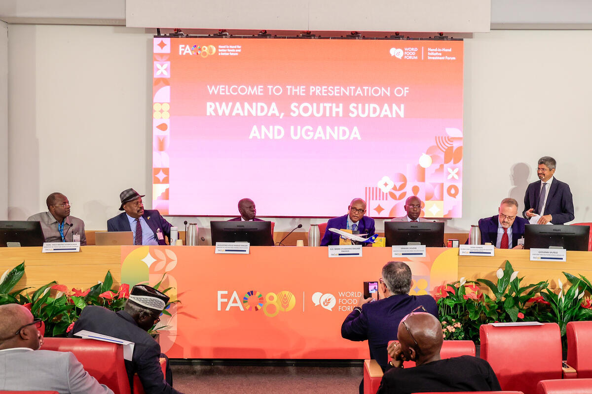 14 October 2025, Rome, Italy. Investment Plan Presentations: South Sudan Uganda and Rwanda. Hand-in-Hand (HIH) Initiative Investment Forum 2025, World Food Forum (WFF) 2025. The fifth edition of the World Food Forum (WFF), the largest annual gathering of agrifood systems stakeholders globally, runs at FAO headquarters in Rome from 10 to 17 October 2025. FAO Headquarters (Green Room).