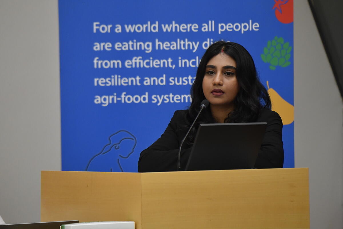 15 October 2025. FAO Headquarters, Rome, Italy. Geospatial Project Monitoring Specialist, Sraboni Sarker at the session “AgroAdapt: Simulating Resilient Food Futures”, World Food Forum 2025.