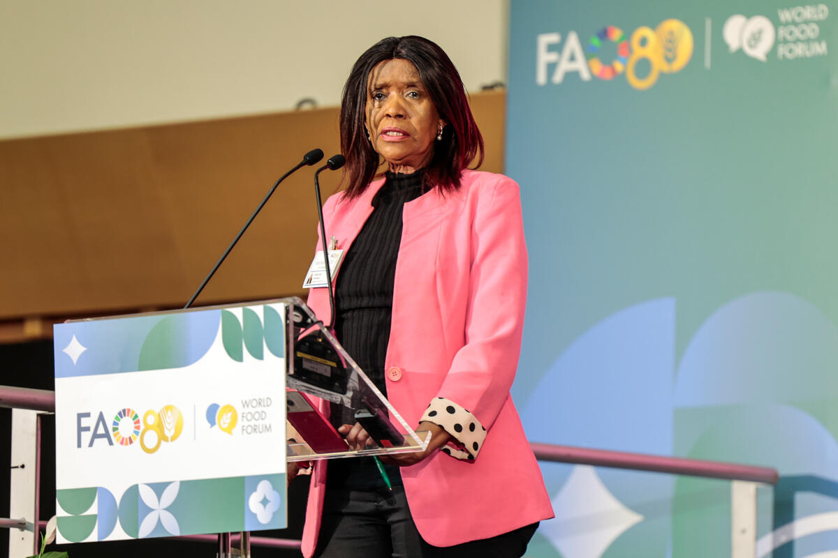 15 October 2025. FAO Headquarters, Rome, Italy. Diane Sibanda, President of the Botswana Farmers Association (BOFA) and Chairperson of the Eastern and Southern Africa Small-Scale Farmers Forum (ESAFF), speaks during the thematic session “Investing in Resilience to Climate Variability and Extremes” at the Hand-in-Hand (HIH) Initiative Investment Forum 2025, held during the World Food Forum 2025.