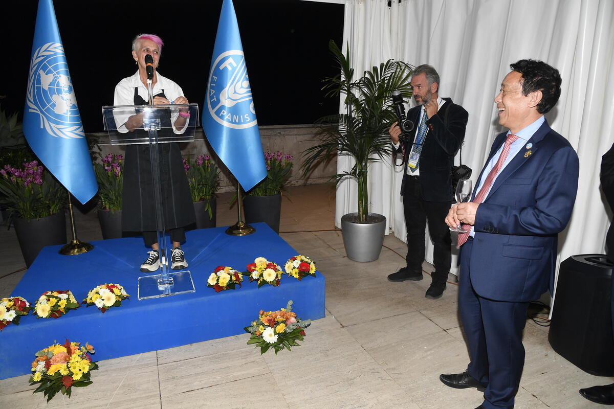 14 October 2025, Rome, Italy. Networking reception of the Hand-in-Hand Initiative Investment Forum, co-hosted by FAO Director-General QU Dongyu and the International Chamber of Commerce (ICC), with support from the World Business Council for Sustainable Development and the Chefs’ Manifesto. FAO Headquarters.