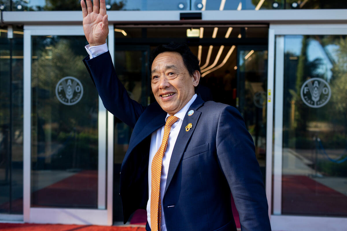 16 October 2025, Rome, Italy. FAO Director-General QU Dongyu waves as he arrives at FAO Headquarters. World Food Day Global ceremony and 80th Anniversary celebration. This year’s World Food Day coincides with FAO’s 80th anniversary, reflecting decades of work to boost food production, reduce poverty, and respond to crises. FAO Headquarters.