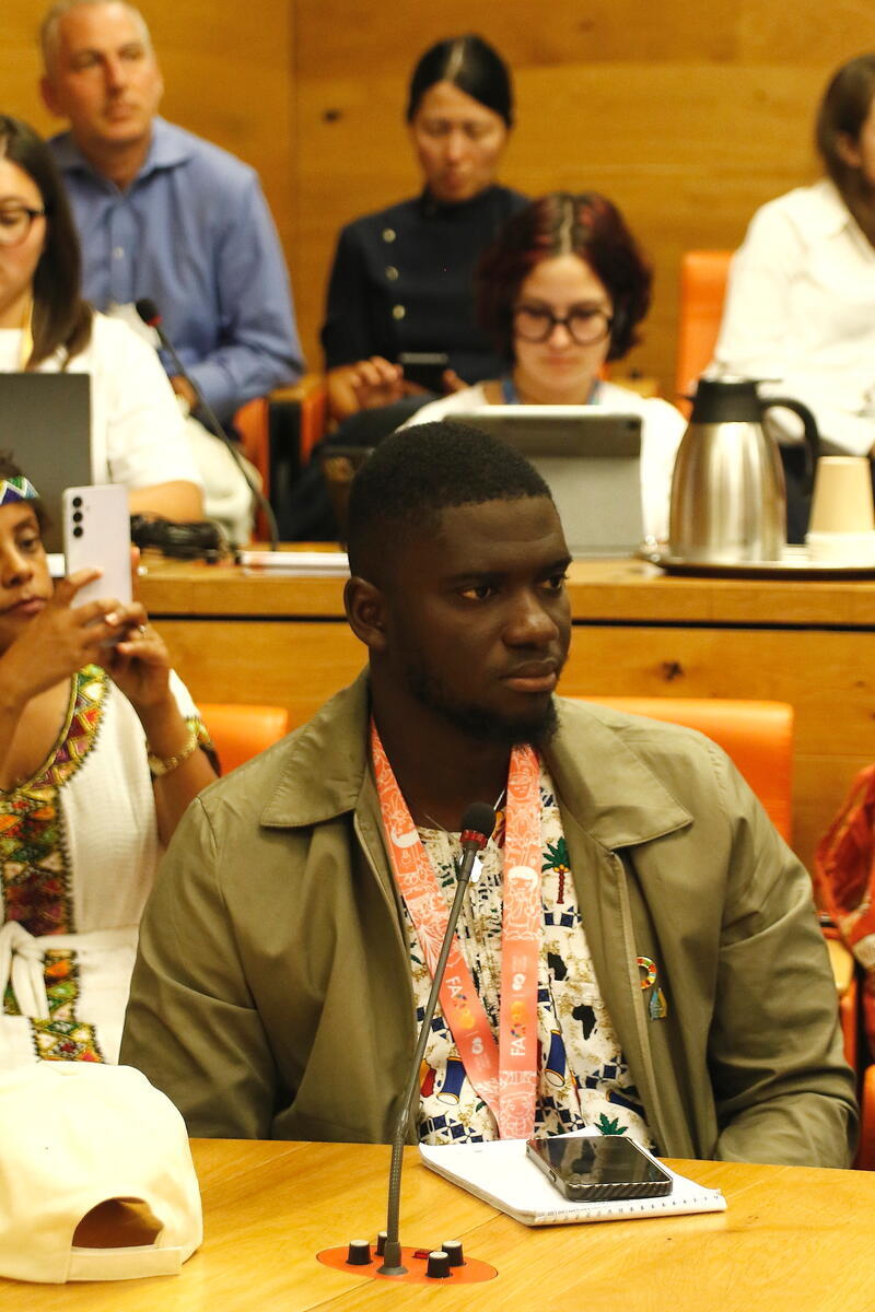 16 October 2025, FAO Rome Headquarters, Italy. Musa Juwara from the WFF Gambia Chapter sits the Youth Assembly Session: The 2nd UN Food Systems Summit Stocktake follow up.