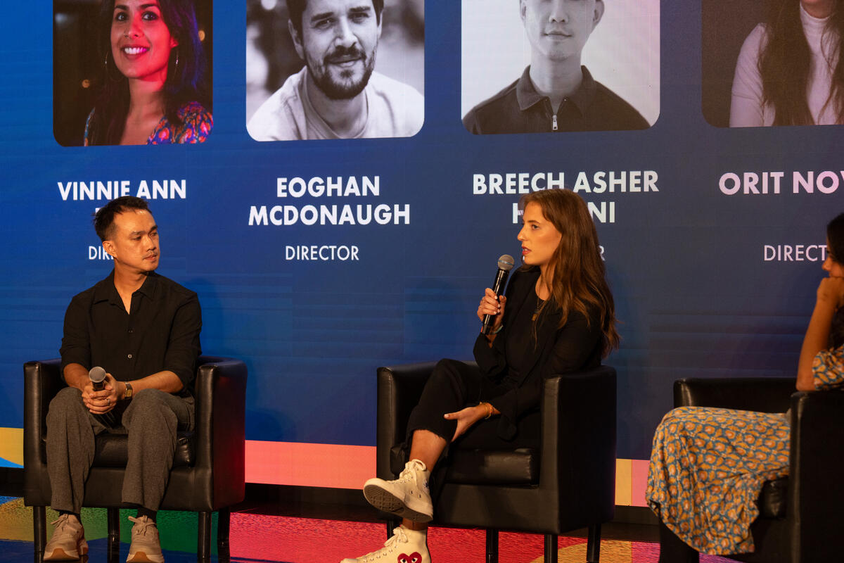 15 October 2025. FAO Headquarters, Rome, Italy. From left to right: award winners Breech Asher Harani, Orit Novak, and Vinnie Ann Bose at the World Food Forum Youth Film Festival Award Ceremony during the 2025 World Food Forum.