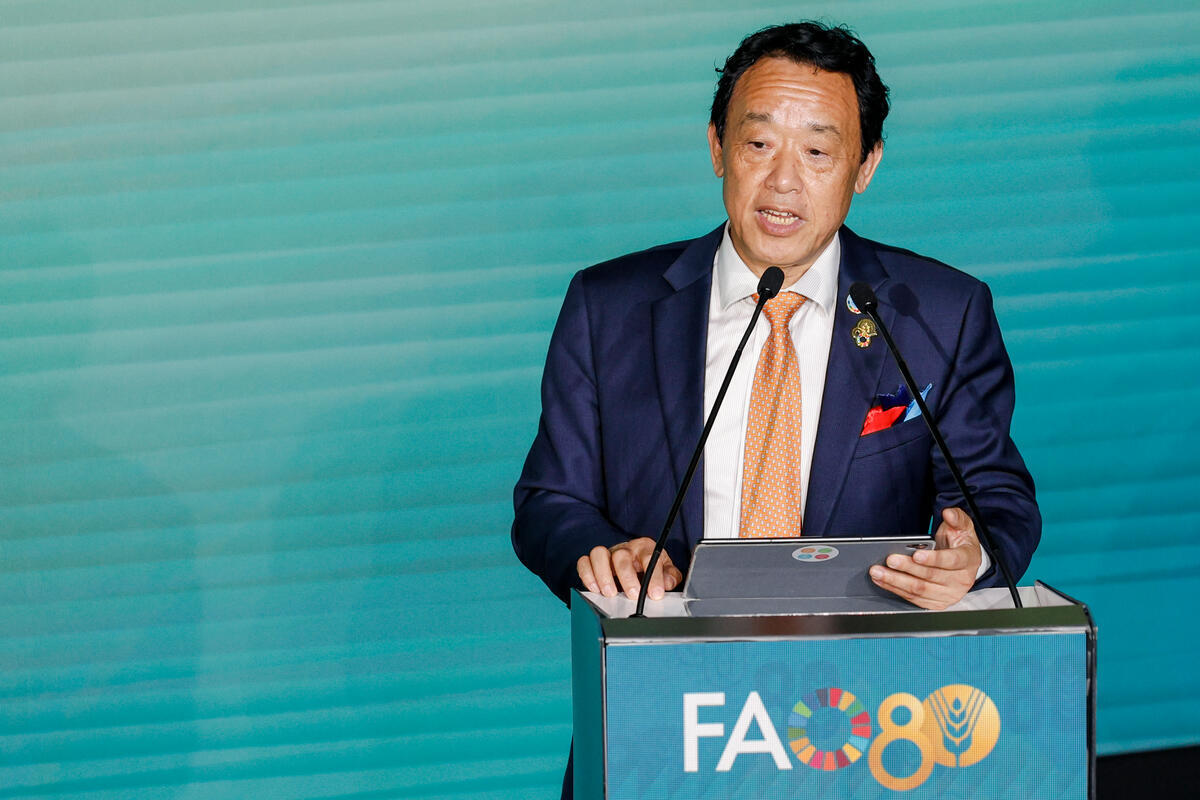 16 October 2025, Rome, Italy. FAO Director-General QU Dongyu delivers his opening remarks during the World Food Day Global ceremony and 80th Anniversary celebration. This year’s World Food Day coincides with FAO’s 80th anniversary, reflecting decades of work to boost food production, reduce poverty, and respond to crises. FAO Headquarters (Plenary Hall).