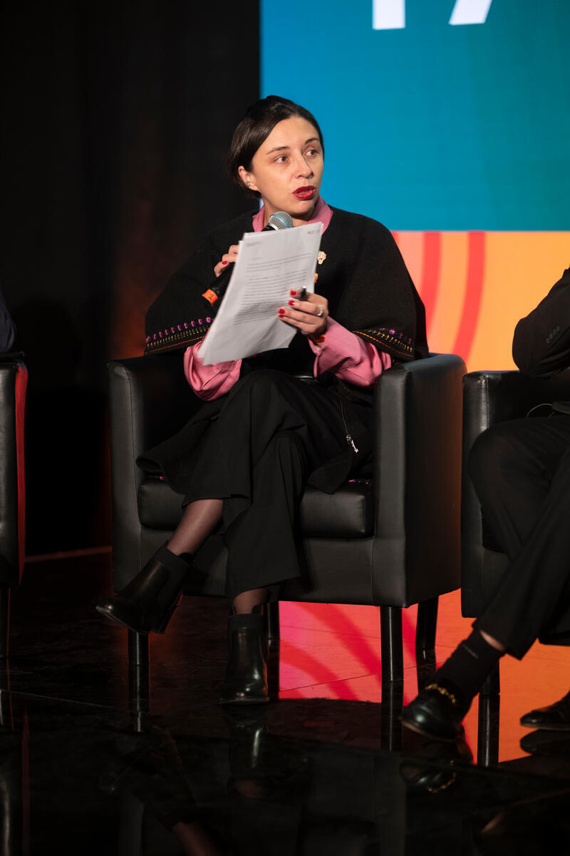 16 October, 2025. FAO Headquarters, Rome, Italy. H.E. Jhenifer María Sindei Mojica Flórez, Ambassador and Permanent Representative of Colombia to FAO, participates in the “Youth at the Forefront: Driving agrifood systems transformation in Latin America and the Caribbean” discussion during the 2025 World Food Forum.