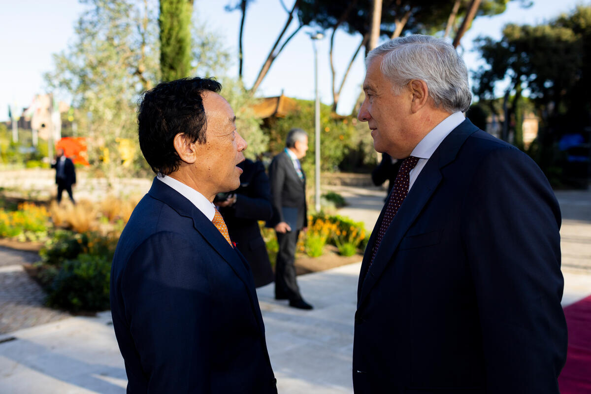 16 October 2025, Rome, Italy. FAO Director-General QU Dongyu (L) welcomes Antonio Tajani, 16 October 2025, Rome, Italy. FAO Director-General QU Dongyu (R) welcomes Antonio Tajani, Vice-President of the Council of Ministers, and Minister of Foreign Affairs of Italy. World Food Day Global ceremony and 80th Anniversary celebration. This year’s World Food Day coincides with FAO’s 80th anniversary, reflecting decades of work to boost food production, reduce poverty, and respond to crises. FAO Headquarters. World Food Day Global ceremony and 80th Anniversary celebration. This year’s World Food Day coincides with FAO’s 80th anniversary, reflecting decades of work to boost food production, reduce poverty, and respond to crises. FAO Headquarters.