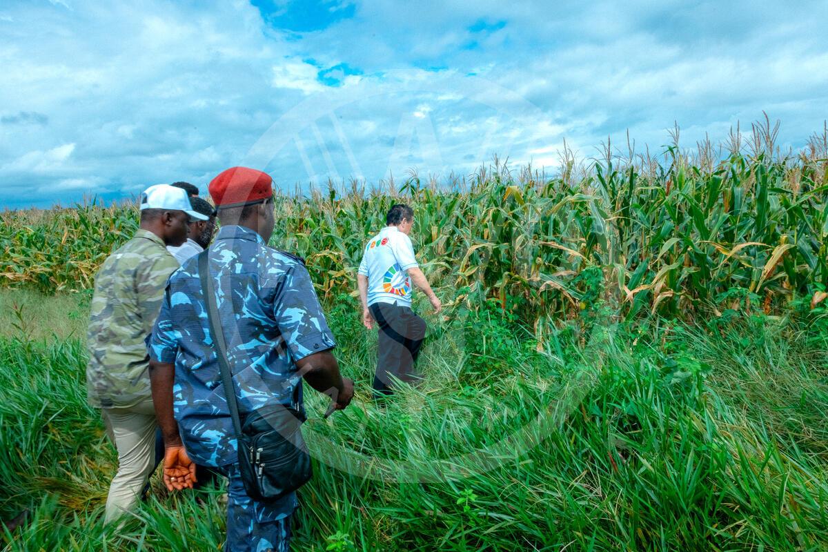 20 July 2025. Makeni, Sierra Leone. FAO Director-General QU Dongyu enters the maize field at the Pee Cee & Sons Agriculture farm, Teko, Makeni, Northern Sierra Leone.