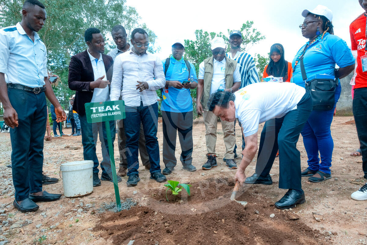 20 July 2025. Makeni, Sierra Leone. FAO Director-General QU Dongyu plants a Teak tree.