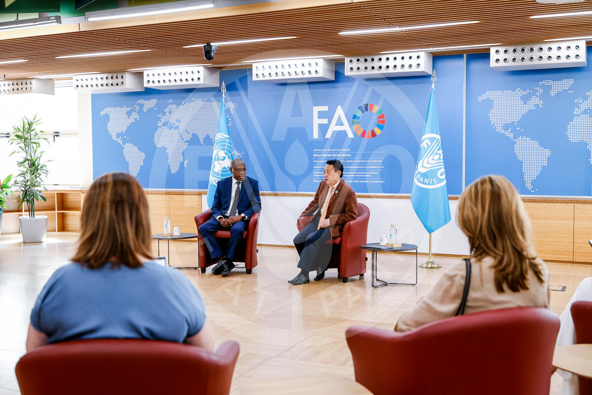 17 July 2025. Rome, Italy. FAO Director-General QU Dongyu meets Allan Azegele, Chairperson of the 88th session of the Codex Executive Committee (CCEXEC). FAO headquarters, (Iraq room).