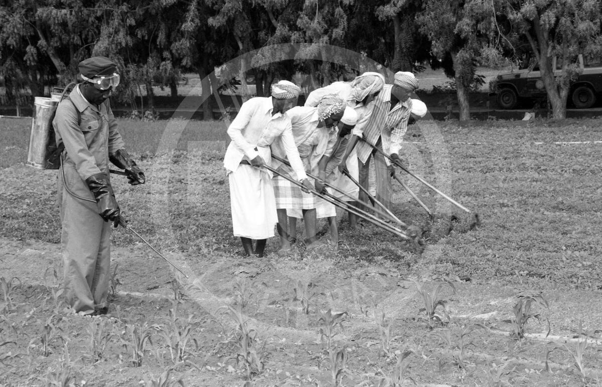 Saudi Arabia, 1982. Crop production and protection at Hakma research station and external farms; training in farm machinery use.