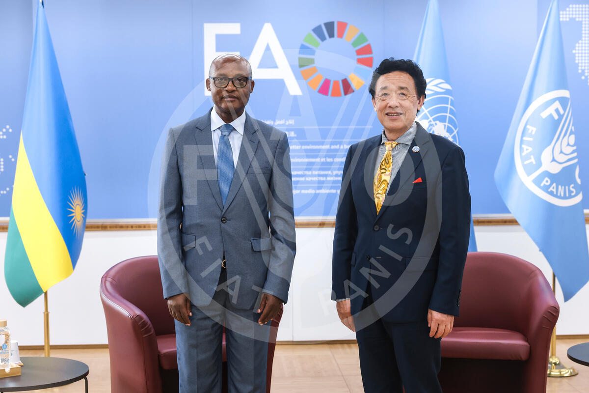 2025 ITALY. FAO Director-General QU Dongyu meets with Rwanda Minister for Agriculture Animal Resources Mark Cyubahiro Bagabe