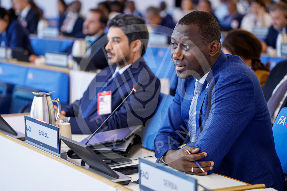 28 June 2025, Rome Italy. Senegal delegate delivers his address during the 44th Session of the FAO Conference and McDougall Memorial Lecture. FAO Headquarters (Plenary Hall).