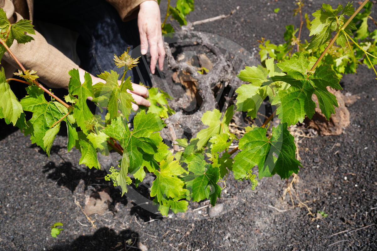 22 April 2025. Lanzarote Island, Spain. Detail of grape grown by Ascensión Robayna. She has farmed over 20 hectares in La Geria for 17 years, fiercely defending traditional agriculture as a path to sustainability.