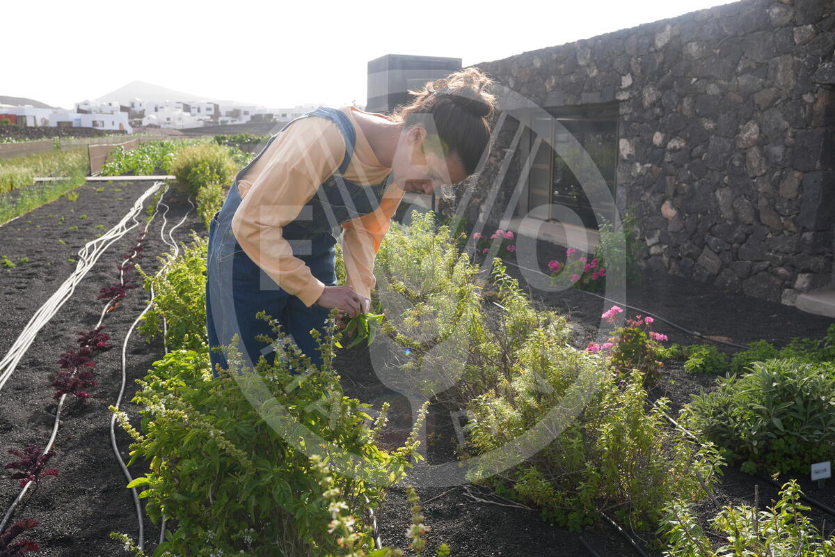 23 April 2025. Lanzarote Island, Spain. Tibisay Mora inspects a prickly pear fruit harvested from a cactus adapted to Lanzarote’s arid volcanic landscape.