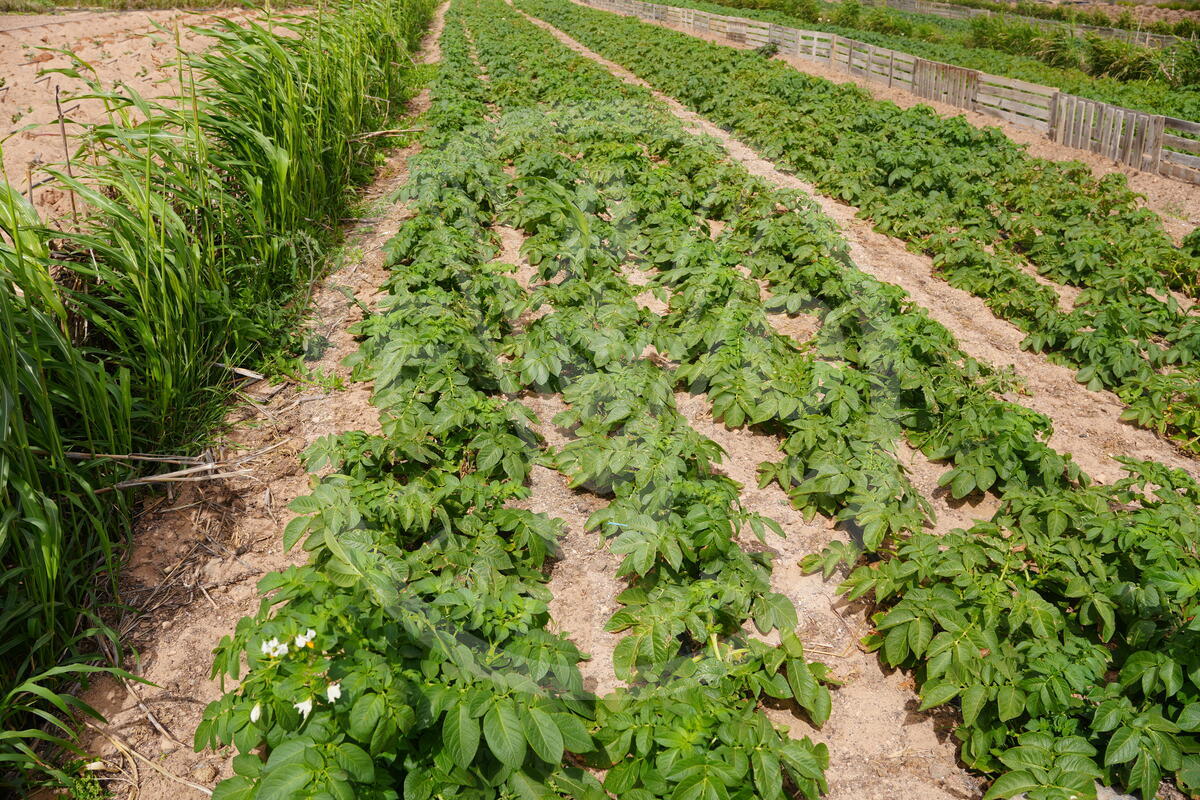 23 April 2025. Lanzarote Island, Spain. Sweet potato cultivation in jable soil, where marine sands help retain moisture in Lanzarote’s dry climate.