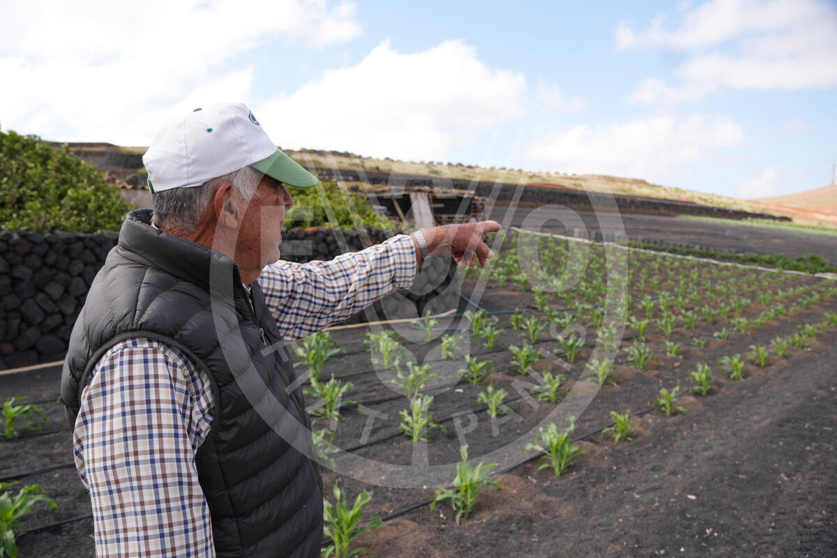 21 April 2025. Lanzarote Island, Spain.  Francisco Clavijo, a farmer from northern Lanzarote- Spain, presents his enarenado fields and traditional crops.
