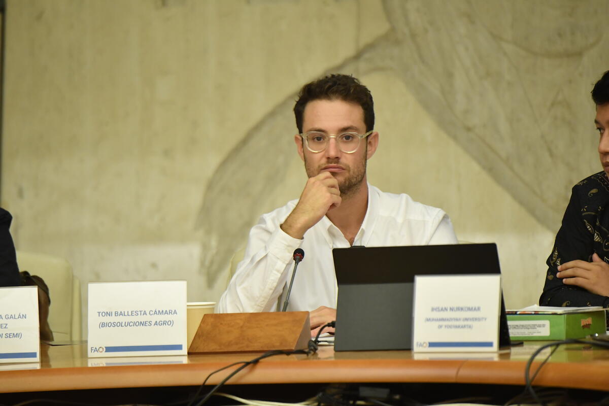 17 October 2025. FAO Headquarters, Rome, Italy. CEO, Biosoluciones Agro, Toni Ballesta Cámara speaks at the session “Producing More with Less: Youth as Innovators for a Sustainable Future”, World Food Forum 2025.