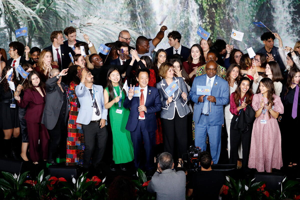 17 October 2025, FAO Rome Headquarters, Italy. All team leaders join the stage alongside DG QU Dongyu during the World Food Forum 2025 Closing Ceremony.