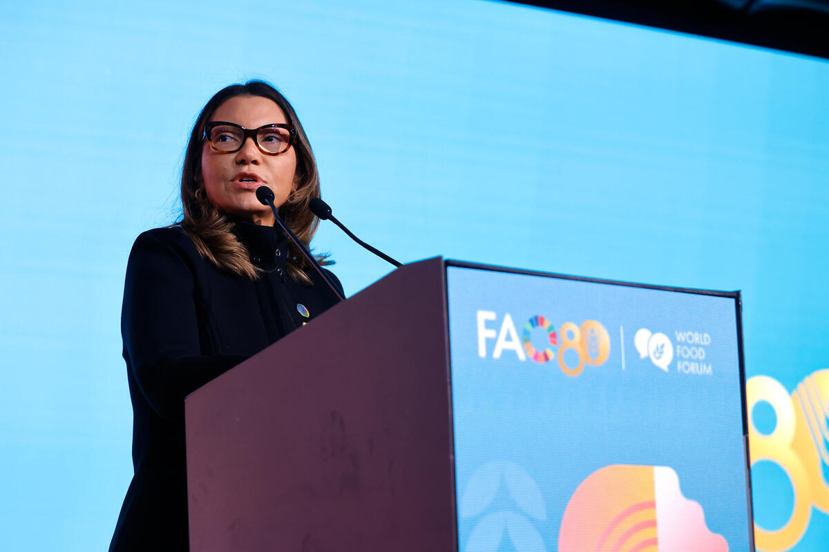 17 October 2025, Rome, Italy. Rosângela Lula da Silva, First Lady of the Federative Republic of Brazil, delivers her address during the World Food Forum 2025 Closing Ceremony. The fifth edition of the World Food Forum (WFF), the largest annual gathering of agrifood systems stakeholders globally, runned at FAO headquarters in Rome from 10 to 17 October 2025. FAO Headquarters (Plenary Hall).