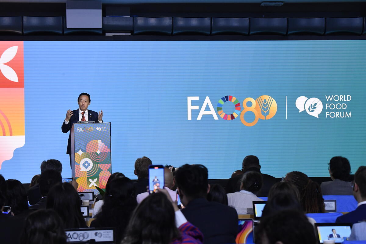 17 October 2025. FAO Rome Headquarters, Italy. FAO Director-General QU Dongyu delivers his address during the World Food Forum 2025 Closing Ceremony. World Food Forum (WFF) 2025.