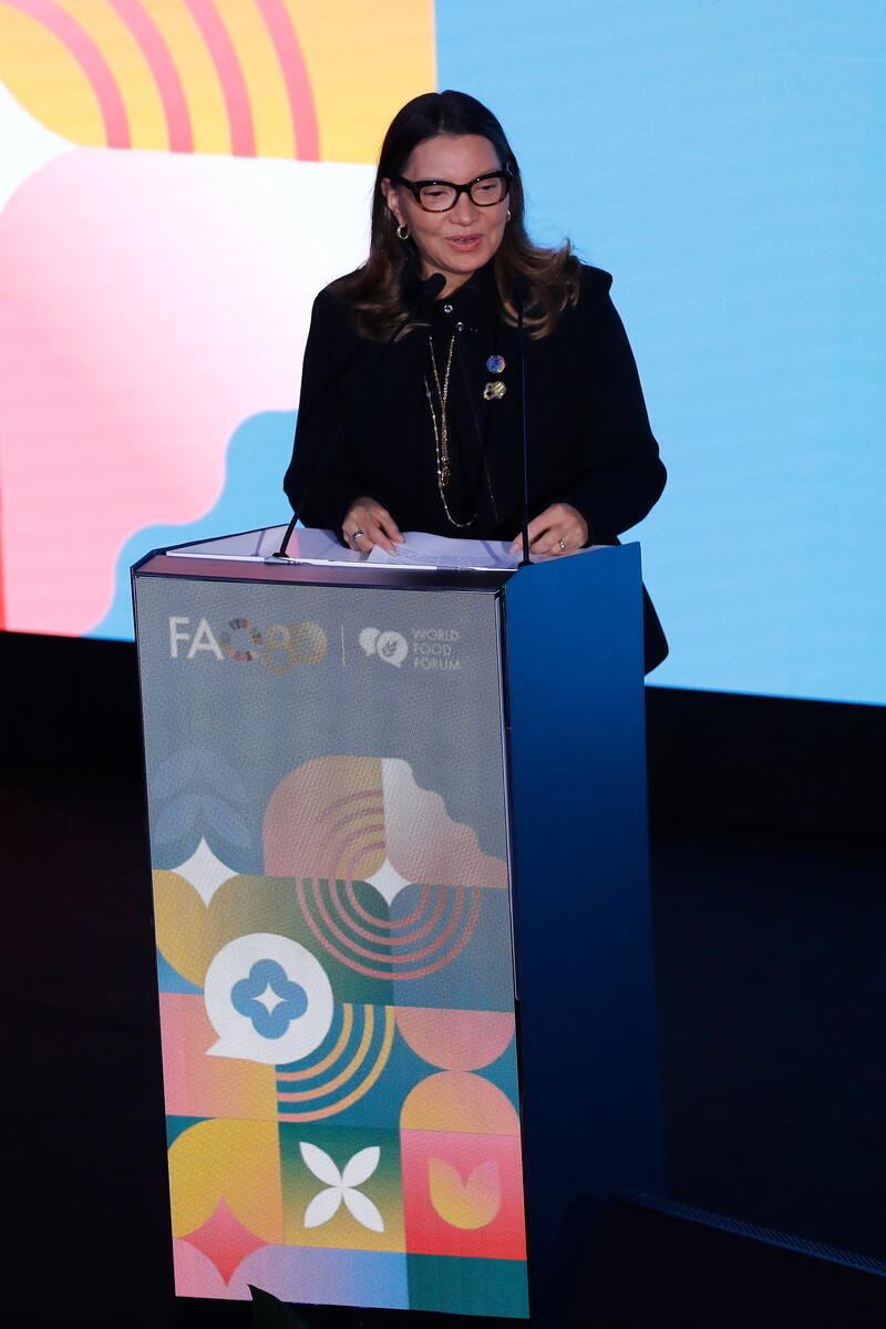 17 October 2025, FAO Rome Headquarters, Italy. H.E. Rosângela Lula da Silva, First Lady of the Federative republic of Brazil, delivers her speech during the WFF 2025 Closing Ceremony.