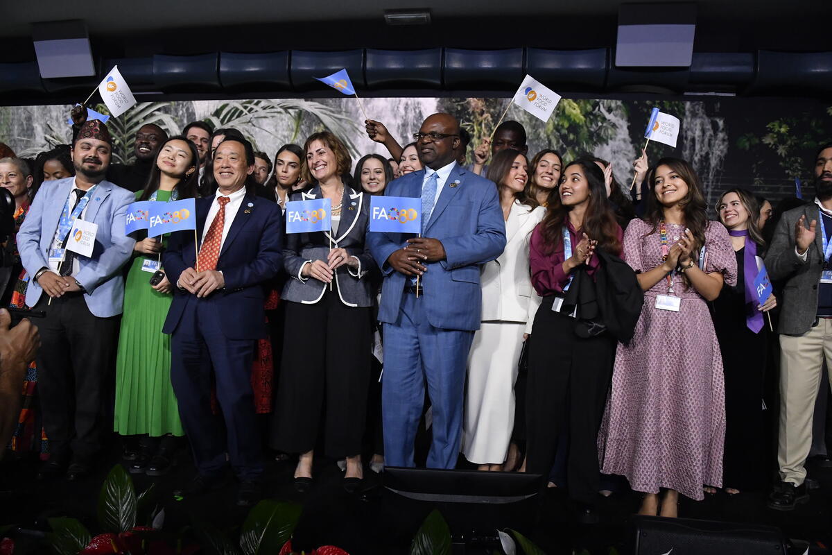17 October 2025. FAO Headquarters, Rome, Italy. Team leaders join the stage alongside FAO Director-General QU Dongyu during the World Food Forum 2025 Closing Ceremony. World Food Forum (WFF) 2025.