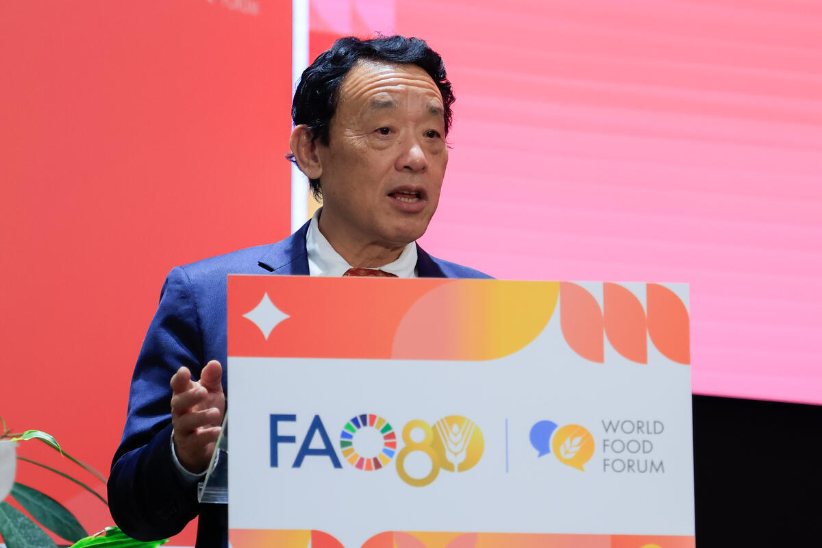 17 October 2025, Rome, Italy. FAO Director-General QU Dongyu addresses his closing remarks. High-level event: Bridging investments and smallholder farmers for resilient coffee value chains. Hand-in-Hand (HIH) Initiative Investment Forum 2025, World Food Forum (WFF) 2025. The fifth edition of the World Food Forum (WFF), the largest annual gathering of agrifood systems stakeholders globally, runs at FAO headquarters in Rome from 10 to 17 October 2025. FAO Headquarters (Red Room).