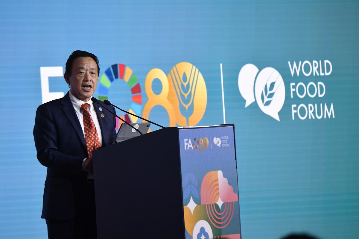 17 October 2025. FAO Rome Headquarters, Italy. FAO Director-General QU Dongyu delivers his address during the World Food Forum 2025 Closing Ceremony. World Food Forum (WFF) 2025.