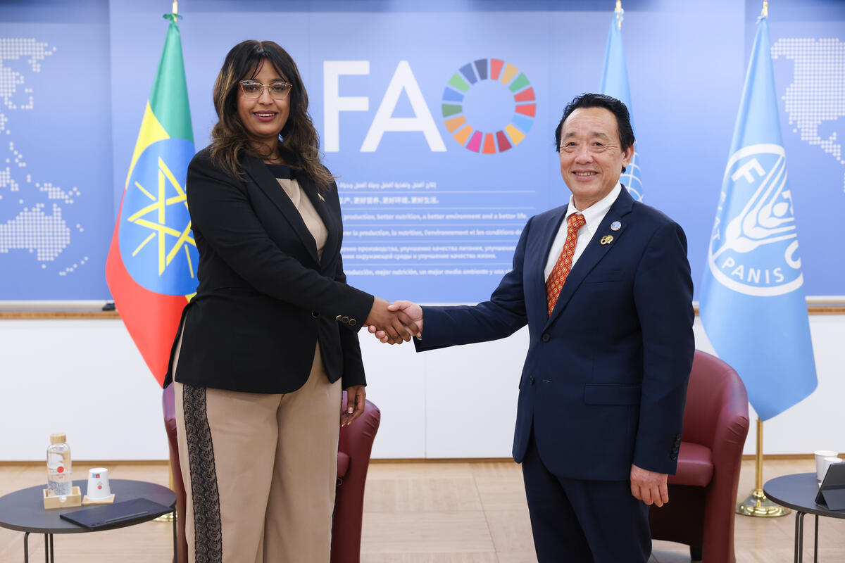 2025 ITALY. FAO Director-General QU Dongyu meets with Ethiopia Minister Tourism Selamawit Kassa Wodajeneh