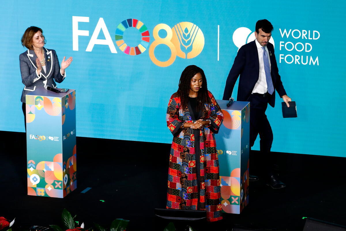 17 October 2025, FAO Rome Headquarters, Italy. Moderator Keisha German introduces the speakers during the World Food Forum 2025 Closing Ceremony.