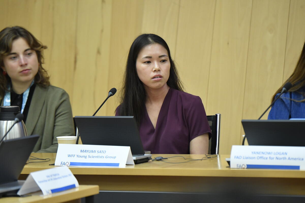 16 October 2025, Rome, Italy. Marilena Bachmeier, Youth Policy Board Member (L) and Mayumi Sato, Young Scientists Group (C) attend the event Empowering women and girls in science for agrifood systems transformation. World Food Forum (WFF) 2025. The fifth edition of the World Food Forum (WFF), the largest annual gathering of agrifood systems stakeholders globally, runs at FAO headquarters in Rome from 10 to 17 October 2025. FAO Headquarters (German Room).