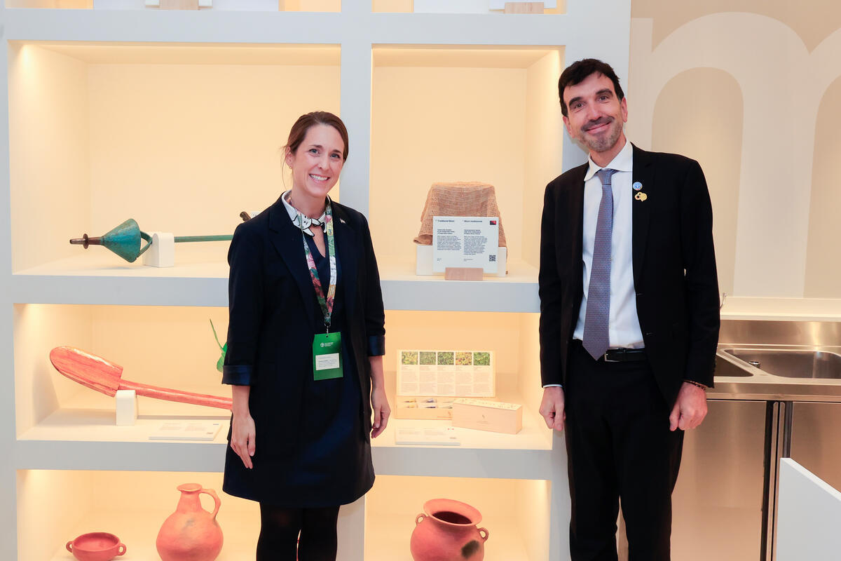 16 October 2025, Rome, Italy. Laurence Fouquette-L’Anglais (L), delegate of Quebec in Rome, FAO Deputy Director-General Maurizio Martina (R). Visit to the newly inaugurated Food and Agriculture Museum & Network (FAO MuNe). FAO World Food Day Global ceremony and 80th Anniversary celebration. This year’s World Food Day coincides with FAO’s 80th anniversary, reflecting decades of work to boost food production, reduce poverty, and respond to crises. FAO Headquarters (FAO Museum).