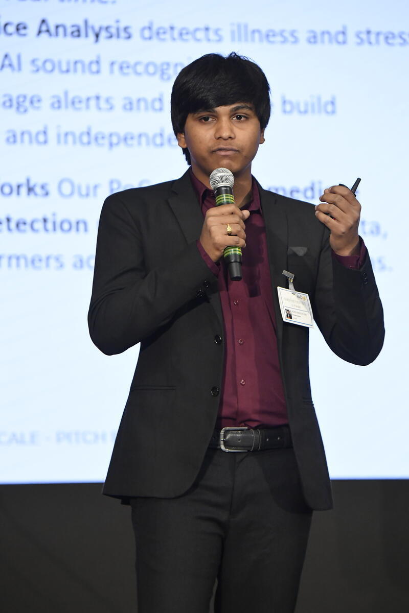 16 October 2025, Rome, Italy. Kroviddi Madhulash Babu, CEO at Agrisakhi (clairvoyance) speaks during the event Seed to Scale: Agrifood pitch battle. World Food Forum (WFF) 2025. The fifth edition of the World Food Forum (WFF), the largest annual gathering of agrifood systems stakeholders globally, runs at FAO headquarters in Rome from 10 to 17 October 2025. FAO Headquarters (Green Room).