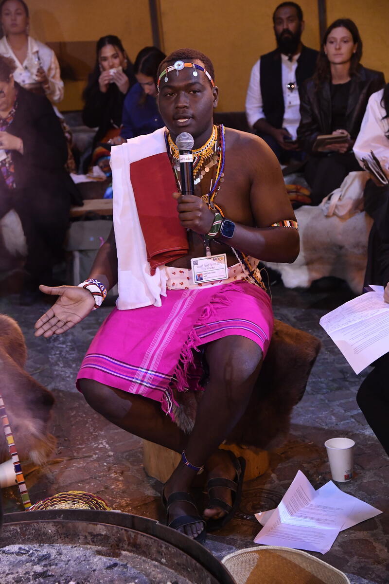 16 October 2025. FAO Headquarters, Rome, Italy. Member UNFPA YAP And Programs Officer at Baringo Women and Youth Organization (BWYO), Tobias Memusi speaks at the session “Indigenous Peoples in humanitarian crisis”, World Food Forum 2025.