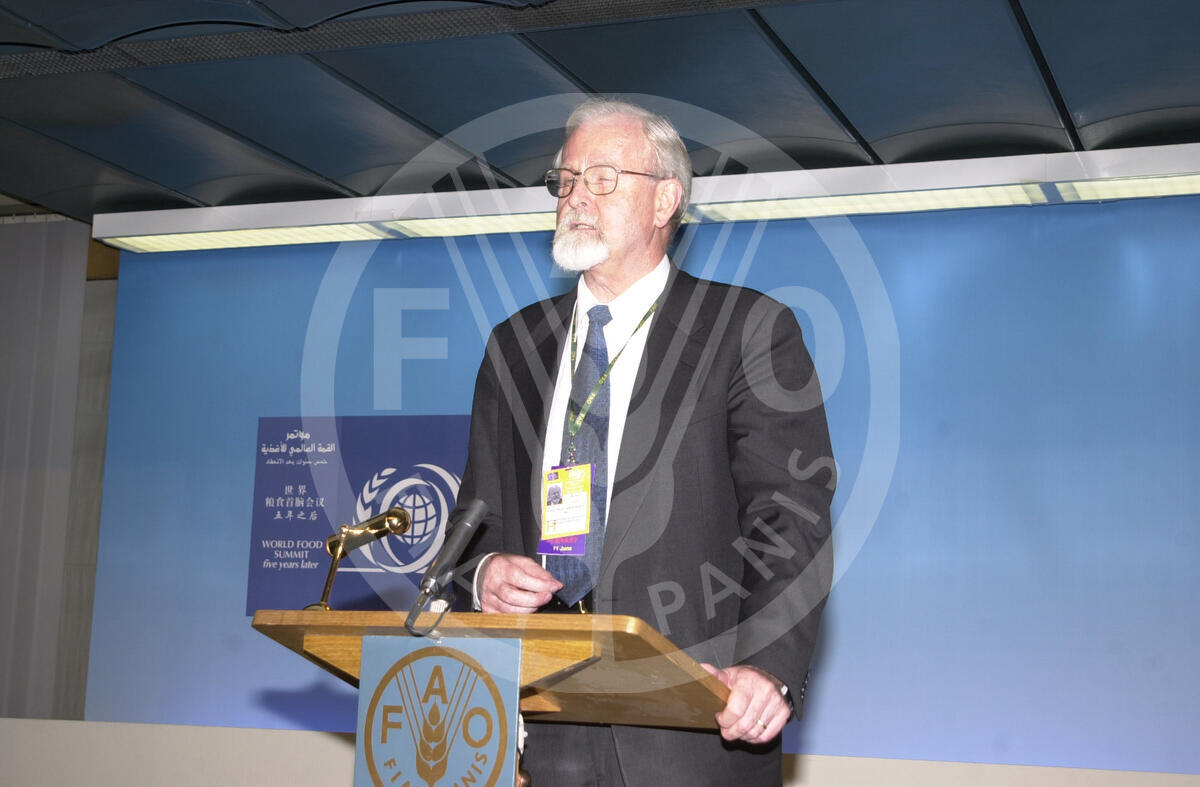 12 June 2002, Rome - Per Pinstrup-Andersen, Director-General, International Food Policy Research Institute (IFPRI) delivering his statement during the World Food Summit:fyl at FAO headquarters.