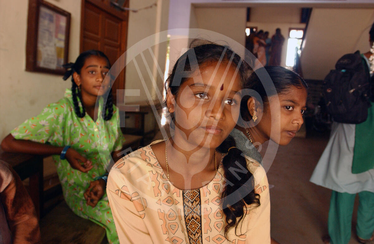 25 January 2005, Nagapattinum, Tamil Nadu, India - Children returning to school for the first time since the tsunami claimed over 15,000 lives along the south-eastern coast of India. The school was closed for a month to be used as a temporary shelter for the those who lost their homes.