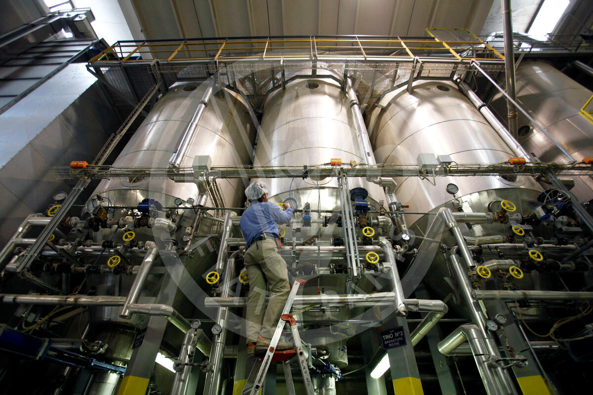 16 April 2012, Pavia - An employee checking the dials on a silo containing parboiled rice inside a rice processing and packaging plant in Pavia, Italy.