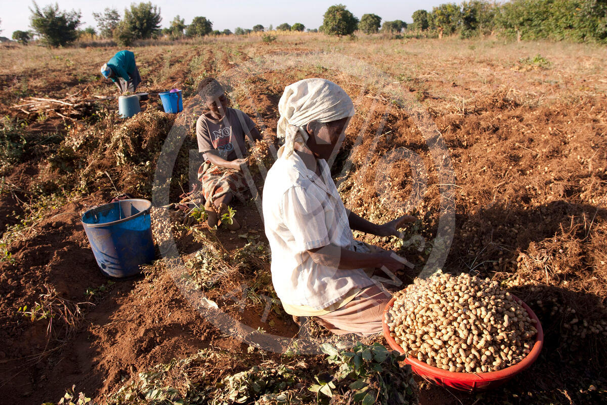 21 May 2013, Mchinji District, Malawi- Women harvesting groundnuts in a field at Chipaka Village.