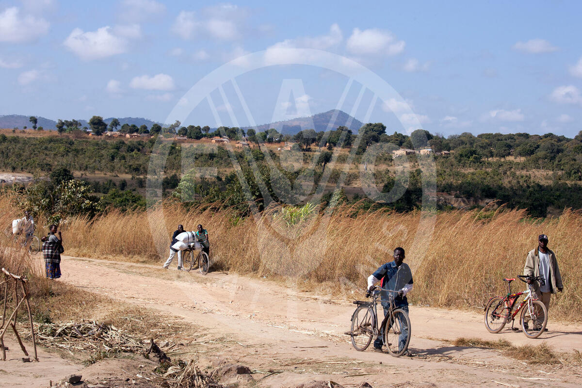 23 May 2013, Mchinji, Malawi- Workers transporting goods on their bicycles on the road in Mchinji District.