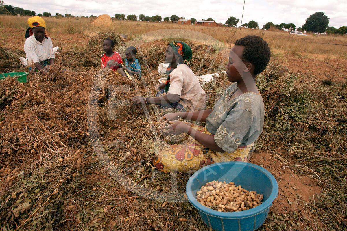 20 May 2013, Mchinji District, Malawi- Farmers harvesting groundnuts in a field at Chipaka Village.