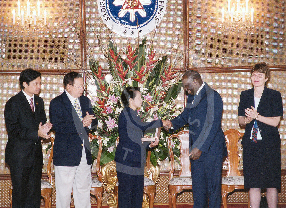 19-21 February 2004 - FAO Director-General Jacques Diouf granting H.E. Gloria Macapagal-Arroyo, President of the Republic of Philippines, with the Ceres medal.