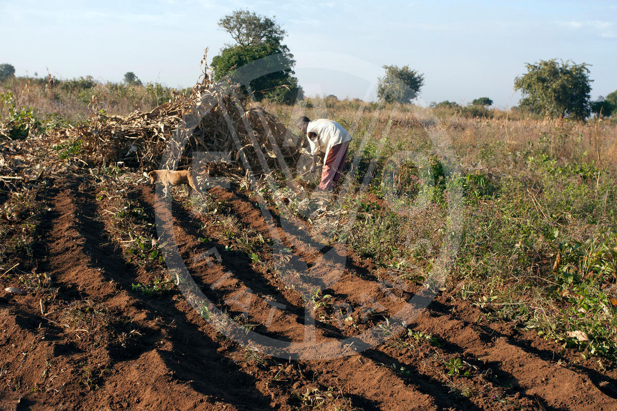 21 May 2013, Mchinji, Malawi- Farmer Daniel Bernard cultivating his garden at Mzingo Village.