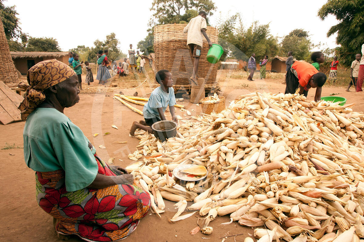 21 May 2013, Mchinji, Malawi- Seventy-three years old Tomaida Lehabi Naniya, a beneficiary of the Social Cash Transfer Programme, harvesting maize in her fields at Mzingo Village.