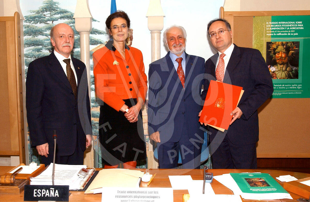 26 October 2005, Rome - Spanish Ambassador signing the Agreement for the Establishment of the Global Crop Diversity Trust at FAO Headquarters.