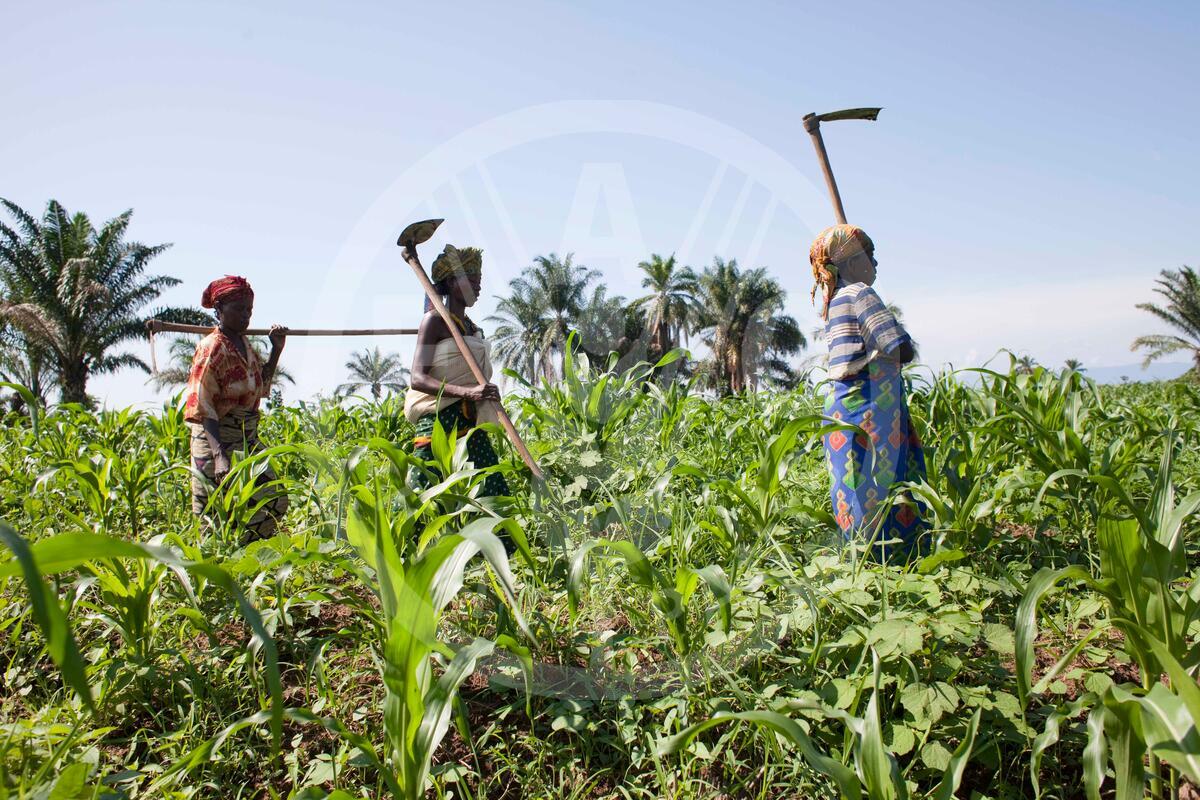 14 December 2010, Rumonge - Women from the Mutambara I Village de la Paix cultivating maize under the guidance of technical experts from the Bureau Appui Developpement et Entraide Communautaire (BADEC) and FAO.