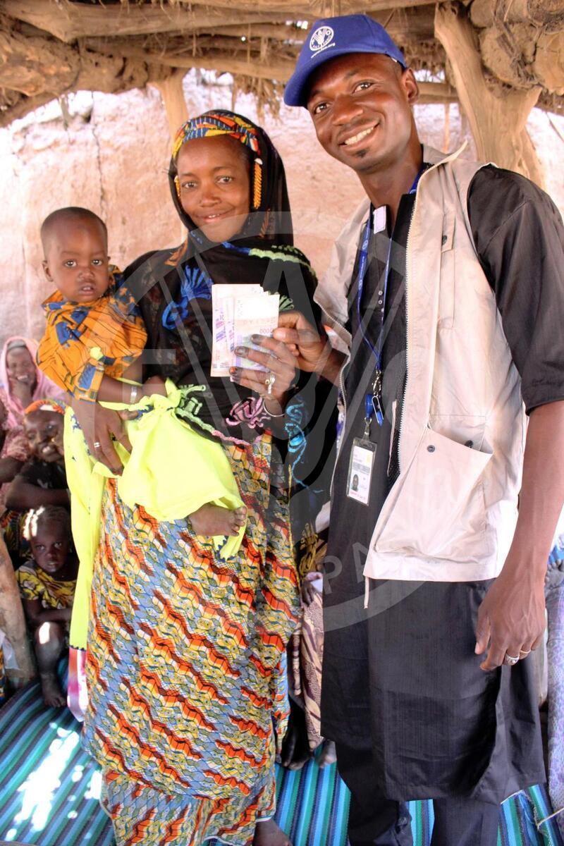 18 March 2016, Guetema, Mali - In Mali, Maman Sow received the FAO cash transfer in a timely manner, helping her to meet the basic needs of her family Ӂbout four months after the harvest, our food reserve was coming to an end when I received the money." For the first time in years she didnt have to borrow money to buy food during the lean season. Under the productive transfers/CASH+ programme, women are the direct recipients of cash transfers in 99 percent of the cases in this country. In order to increase the resilience of vulnerable households affected by repeated shocks in the Sahel, FAO is currently experimenting the Ӱroductive transfers" approach (CASH+) in Mali and Mauritania. The 18-month programme, based on a successful FAO project implemented in 2014 in Burkina Faso and Niger, combines unconditional cash transfers with the provision of in-kind livestock inputs to benefit 1250 very poor vulnerable households in 46 villages of the Kayes region and the Wilaya of Gorgol. In order to better cope with, recover from and adapt to the multiple shocks and recurrent crises affecting the Sahel region, the poorest households need to protect their livelihoods, diversify their sources of income and accumulate productive assets.