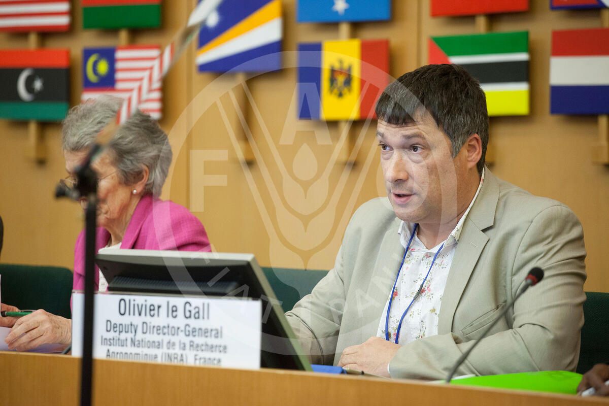 17 February 2016, Rome, Italy - Olivier Le Gall, Institut National de la Recherche Agronomique (INRA), France, FAO International Symposium on Ӕhe Role of Agricultural Biotechnologies in Sustainable Food Systems and Nutrition". Reporting of outcomes from the parallel sessionsand closing remarks, FAO headquarters (Green room).