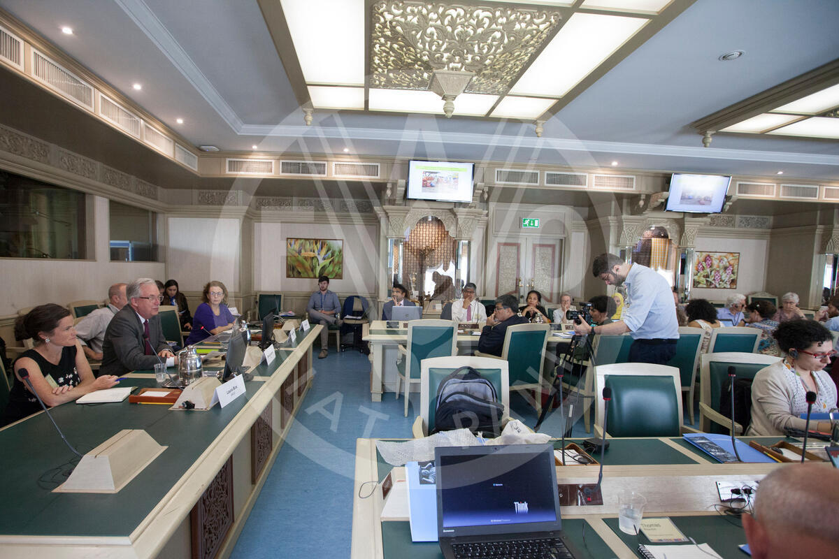 19 June 2019, Rome, Italy - (Left to right) Laura Birx, BMGF, Daniel Gustafson FAO, Benjamin Davis, FAO, Terri Sarch, DFID. Inclusive Agriculture and Rural Transformation - Building a Shared Research Agenda FAO Headquarters (Malaysia Room).