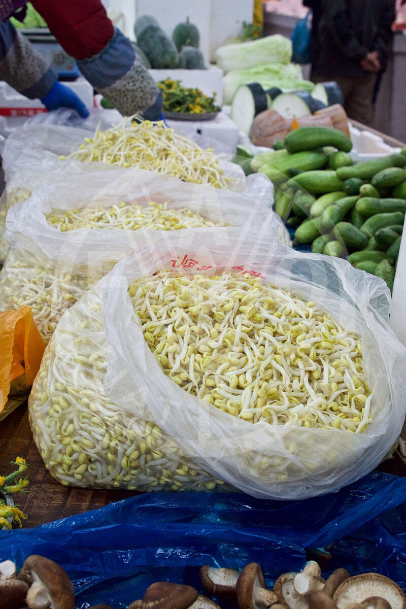 05 March 2016, Beijing, China - Beans sprouts on display at a local market in Beijing.